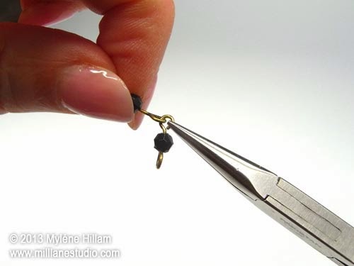 With the adhesive dry, I trim away the ends.... and slide the knot up inside the hole of the square bead where it can't be seen.